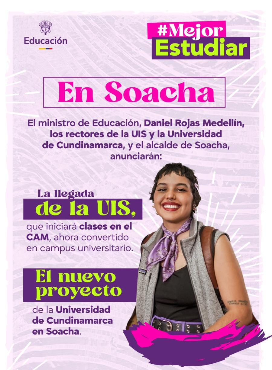 Este jueves 4 de septiembre, el ministro de Educación, Daniel Rojas Medellín, llegará a Soacha para compartir resultados clave en materia de infraestructura educativa, alimentación escolar y cultura ciudadana.