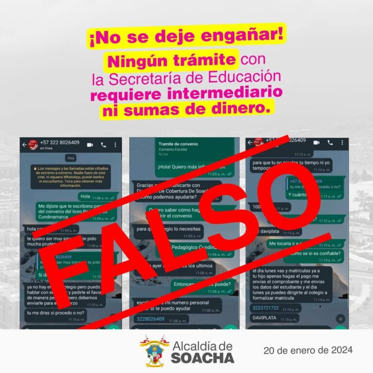 Impostores que se hacen pasar por personal de la Secretaría de Educación de Soacha...